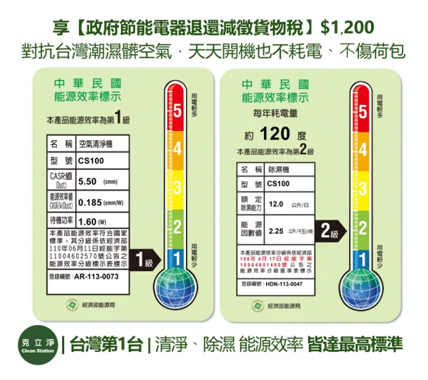 克立淨 CS100 超能雷神 電漿空氣清淨機【除濕旗艦款】
