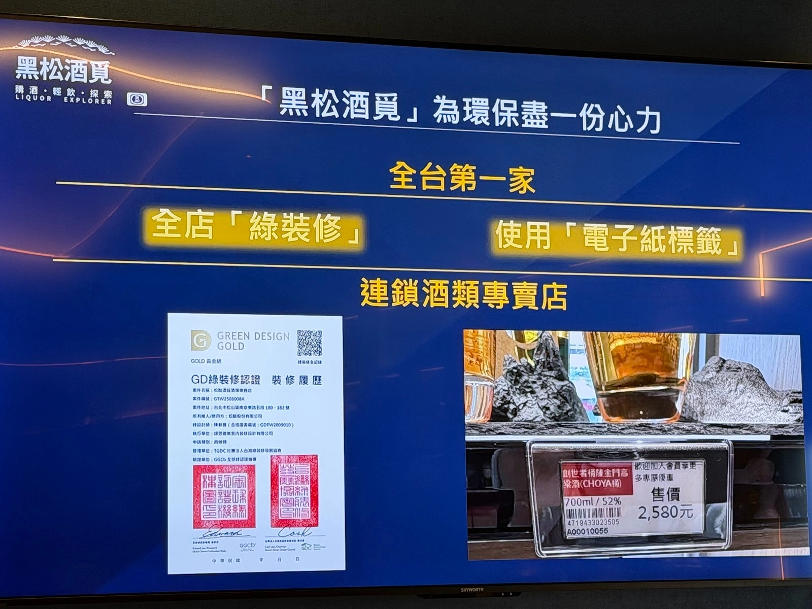 本門市為全台第一間導入 GD 綠裝修黃金級標準的酒類零售空間,